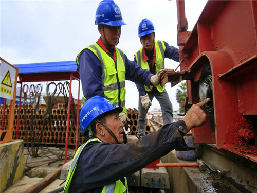 隨后,筆者通過與綜合隊隊長樊小兵的交談中再次了解到,其實地鐵項目機械班的任務(wù)十分繁瑣,它涵蓋了溜槽機具加工安裝,機械設(shè)備維修保養(yǎng),施工接線接電,鋪軌工裝改造維修以及場內(nèi)大大小小幾十種機具配件的加工生產(chǎn)等事情。另外在遇到機械設(shè)備故障時,更是要保證24小時隨叫隨到,人員不多,但工作著實繁重。