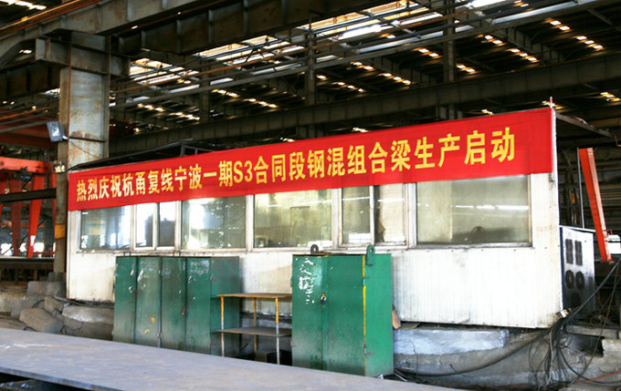 從今年夏天到冬天,互通鋼箱梁經(jīng)歷了不尋常的談判、協(xié)商、溝通過程,最終理順各種關(guān)系,為施工順利進(jìn)行掃除了障礙。集團(tuán)公司主管領(lǐng)導(dǎo)要求該項(xiàng)目部9月底選好隊(duì)伍,10月底必須生產(chǎn)第一片鋼箱梁。之后緊鑼密鼓地完成一系列規(guī)定動作:公開招標(biāo)、考察鋼箱梁生產(chǎn)廠家、洽談生產(chǎn)和運(yùn)輸價(jià)格、組織技術(shù)人員編制施工方案、公開招標(biāo)錄用鋼箱梁安裝隊(duì)伍、采購大批量鋼板,一步步實(shí)施計(jì)劃,經(jīng)過不懈努力,最終提前兩天在舟山長宏鋼結(jié)構(gòu)工程有限公司拉開鋼箱梁生產(chǎn)序幕。