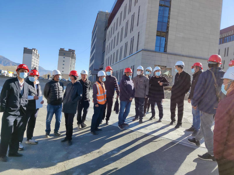 孟曉林一行詳細詢問了各標段建設任務完成情況,實地查看了項目建設進度,對公司承建的藏醫(yī)藥大學新校區(qū)項目三標段取得成績給予了高度肯定,并在確保施工進度、保證施工質量、做好防疫工作等方面提出了具體要求。