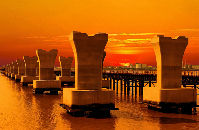 由公司承建的濱海高架橋全長4510米,上部結(jié)構(gòu)為8孔40米+77孔50米預(yù)制架設(shè)箱梁+135米連續(xù)梁,設(shè)計樁基712根、承臺176座、墩身176座。下部結(jié)構(gòu)采用鉆孔樁+承臺+花瓶墩,地處寧波鎮(zhèn)海區(qū)淺海水域,橋梁跨越既有、擬建、在建的排污管道、直徑4.5米原油管道、給水管道、取水盾構(gòu)、LNG管線和通訊光纜等,管線防護和樁基施工安全風險高。為了在施工中防止不慎傷及管線,造成重大安全事故,該項目部請寧波市海事局“蛙人”潛水摸排、操控地下管線探查儀探查等,用漂浮物標出17種管線與棧橋、樁基交叉部位的具體位置,在樁基、承臺、墩身施工過程中,安全避開所有水下管線。在項目部科學組織下,濱海高架橋施工進展順利,因材料運輸?shù)确矫娴耐饨缫蛩赜绊懀杏?根樁基、12座承臺和12座墩身未完成。根據(jù)工期目標,項目部倒排工期計劃,優(yōu)化施工方案,積極協(xié)調(diào)各方關(guān)系,并從濱?;ネǔ檎{(diào)鉆機,增加承臺和墩身模具,以滿足施工需要。