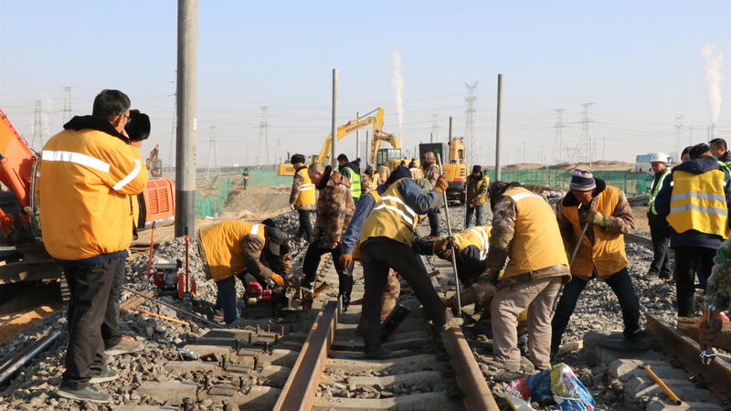 11月13日,由中鐵二十一局一公司負責施工的烏準線準東至準東北區(qū)間上行線順利完成撥接。此次線路撥接為Ⅲ級封鎖施工,K1+500m至K5+037m區(qū)間線路分為2個龍口同時進行施工。現(xiàn)場20余臺機具設備已提前準備完畢,隨著封鎖區(qū)間命令的下達,近200余名身穿黃色馬甲的作業(yè)人員進入施工現(xiàn)場,根據(jù)分工有條不紊地進行扒砟、線路撥接、鋼軌切割、補砟、大機整道等施工作業(yè)。經(jīng)過3個半小時的緊張奮戰(zhàn),兩處龍口順利完成了撥接任務。