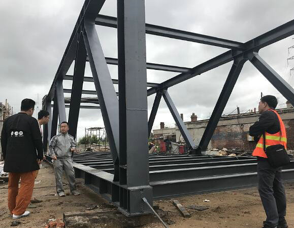 目前齊富項目部K1+289.7公里人行天橋已進入后半段施工階段,鋼桁梁也運至施工現(xiàn)場附近的鋼筋場地,電焊工也在按部就班的進行上懸桿及下懸桿的焊接工作,項目經(jīng)理李勝臣、項目副經(jīng)理孫喜剛、房建工區(qū)負責人張勇及公司實驗室人員在鋼筋場地查看鋼桁梁的焊接情況,同時在現(xiàn)場研究下一步鋼桁梁架設施工安排。另外人行天橋的引橋部分,施工工人正在安裝安全欄桿,雖然天氣不佳,但是施工現(xiàn)場的熱情依然高漲。