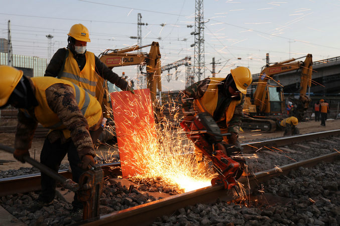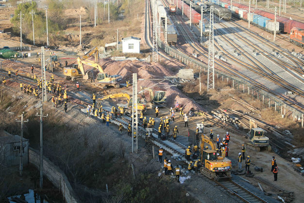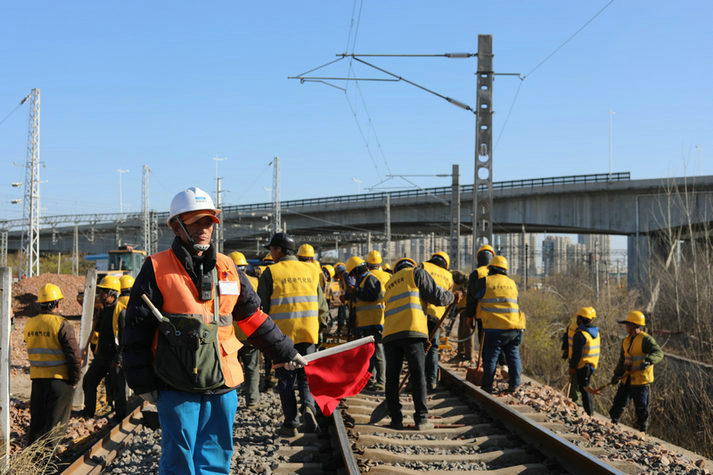5時(shí)許,寒風(fēng)蕭瑟、明月高懸,在封閉網(wǎng)外,施工人員已經(jīng)完成點(diǎn)前安全教育,整齊列隊(duì)等待調(diào)度命令下達(dá);7時(shí)許,隨著駐站聯(lián)絡(luò)員誦讀當(dāng)日施工命令,施工負(fù)責(zé)人帶領(lǐng)施工人員完成入網(wǎng)登記,快速奔赴各自工作崗位,一時(shí)間人聲鼎沸、機(jī)械轟鳴,極目遠(yuǎn)眺,一輪朝陽(yáng)在天邊微微露頭,似乎也關(guān)注著施工現(xiàn)場(chǎng)的點(diǎn)滴進(jìn)展;7時(shí)27分,鋸軌、擺放滑軌、道岔橫移一氣呵成;8時(shí),線路撥移到位;8時(shí)40分,道岔縱移就位,岔前連接、岔后配軌同步開(kāi)始;9時(shí)36分,軌道連接完成,電務(wù)、接觸網(wǎng)專業(yè)開(kāi)始進(jìn)行設(shè)備調(diào)試;12時(shí)整,現(xiàn)場(chǎng)完成開(kāi)通前檢查確認(rèn),報(bào)駐站聯(lián)絡(luò)員正點(diǎn)銷記,線路開(kāi)通。在5小時(shí)的施工過(guò)程中,各專業(yè)配合默契;管理人員認(rèn)真負(fù)責(zé),各司其責(zé)緊盯每一處重點(diǎn)要害;施工人員不畏艱苦,頂著寒風(fēng)完成了本次施工。