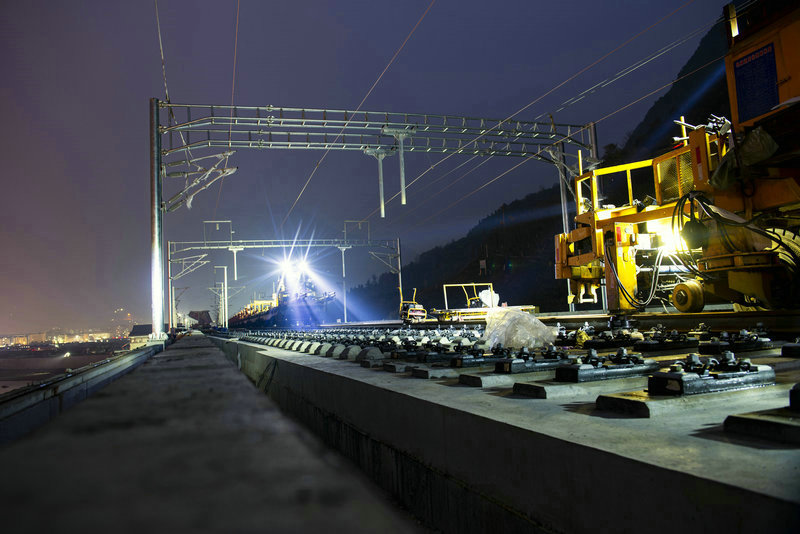 湖北襄陽訊 12月10日凌晨2時許,隨著WZ-500型長鋼軌鋪設(shè)牽引車將兩根500米長鋼軌緩緩?fù)铣龇€(wěn)穩(wěn)落入承軌槽內(nèi),標(biāo)志著由中鐵三局線橋公司承擔(dān)鋪軌與軌道線路放散鎖定和鋼軌無縫焊接任務(wù)的鄭萬高鐵ZWZQ-2標(biāo)右線鋪軌進入興山車站,繼續(xù)向著標(biāo)段鋪軌終點站巴東北站推進,同時也意味著年內(nèi)南漳、???、神農(nóng)架、興山、巴東將徹底告別無高鐵歷史,宜昌興山、恩施巴東等地居民的高鐵出行網(wǎng)絡(luò)將更豐富。