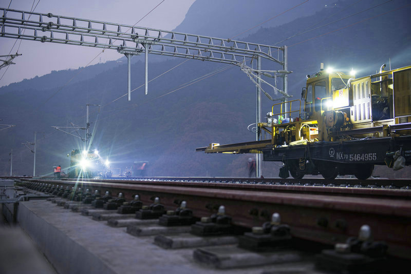 中鐵三局鋪軌施工進入興山站作業(yè)