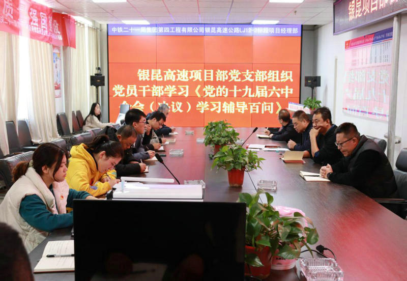 12月12日,中鐵二十一局銀昆高速LJ12-2項目標黨支部組織學習了《黨的十九屆六中全會(決議)學習輔導百問》。會議由項目副書記主持,全體黨員干部職工參加。會上,學習了“如何理解黨的兩個歷史《決議》的基本論述和結(jié)論至今仍然使用”、“如何理解中國共產(chǎn)黨產(chǎn)生的歷史背景”等章節(jié)的內(nèi)容。