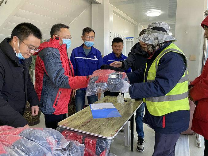 “看著這氣溫下周就零下了,工人們?cè)诂F(xiàn)場(chǎng)施工是越來越冷了呀。”塔城項(xiàng)目負(fù)責(zé)人柴桂林一邊翻著手機(jī)一邊陷入沉思。“馬上聯(lián)系塔城當(dāng)?shù)貏诒J袌?chǎng),盡一切可能在本周末前給所有施工人員統(tǒng)一購(gòu)置高質(zhì)量的棉衣、棉帽等保暖用品,通知各施工隊(duì)伍前來領(lǐng)取。”隨即,他打電話給綜合辦安排了這項(xiàng)工作。
