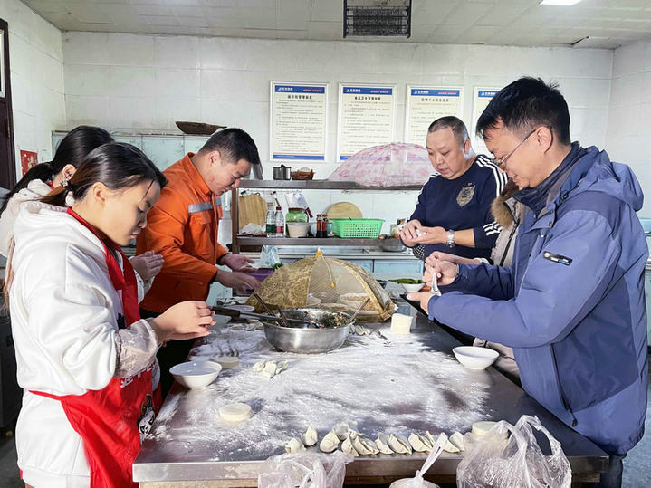 古人認為,“冬至”是陰陽二氣的自然轉化,是上天賜予的福氣,這一天是個吉祥喜慶的日子,預示否極泰來,時來運轉,值得慶賀。身處蜀地,項目部的北方漢子們時常叨念:吃飽了,就不想家了。北方又素有“冬至餃子夏至面”的說法,借此時節(jié),項目部干部職工們剁餡、搟皮,熱情高漲包起了餃子!這一場南北方的交融相遇,這素湯厚餃定是能沖淡鄉(xiāng)愁,慰藉身心的吧,不然那些洋溢在嘴角的笑容真的無從解釋了。