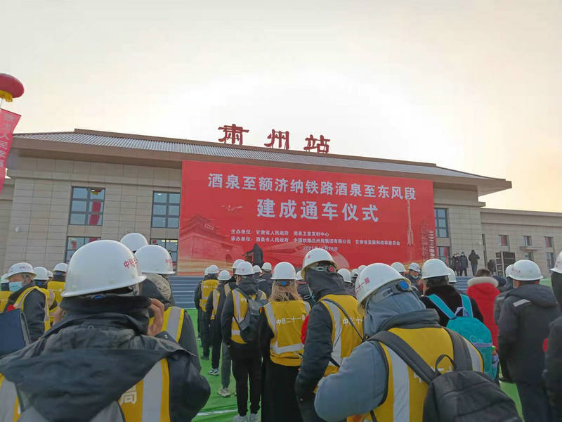 12月26日上午,中鐵二十一局四公司承建的酒額鐵路建成開通儀式在肅州站舉行,標志著酒額鐵路正式通車運行。