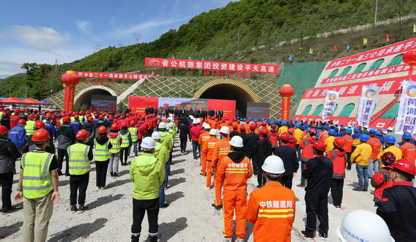 圖為各級(jí)領(lǐng)導(dǎo)參加關(guān)山隧道貫通典禮