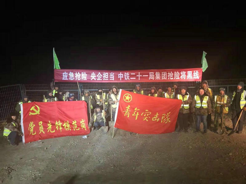“搶險(xiǎn)先鋒,責(zé)任于心”!中鐵二十一局烏將鐵路項(xiàng)目部接到通知后積極響應(yīng),第一時(shí)間成立了以項(xiàng)目經(jīng)理為現(xiàn)場(chǎng)總指揮的應(yīng)急搶險(xiǎn)小組,迅速制定搶險(xiǎn)方案,科學(xué)部署,組織安排搶險(xiǎn)人員30余人,攜帶鐵鍬、鎬頭、鐵絲等搶險(xiǎn)物資,調(diào)配挖掘機(jī)10臺(tái)、裝載機(jī)2臺(tái)、其他車輛7臺(tái)立即趕往搶險(xiǎn)現(xiàn)場(chǎng)。