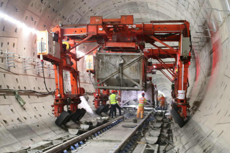 四工區(qū)(三公司)承擔(dān)廣州地鐵18號線鋪軌工程施工任務(wù),線路全長61.3公里,設(shè)9站8區(qū)間。全線需鋪設(shè)軌道122.6公里。首通段設(shè)置17個(gè)機(jī)鋪基地、4個(gè)散鋪基地。整個(gè)鋪軌工程投入機(jī)械設(shè)備軌道車32臺、地鐵專用平板車64臺、龍門吊24臺、鋪軌機(jī)94臺、焊軌設(shè)備6套等,施工高峰超過5000人同時(shí)作業(yè)。