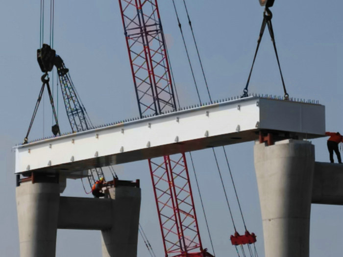 此前做好了鋼箱梁選址、選擇生產(chǎn)制造廠家準備工作,并于10月底生產(chǎn)第一片梁。隨著第一片梁的架設(shè),年內(nèi)架設(shè)G匝道3跨6片梁勝券在握。