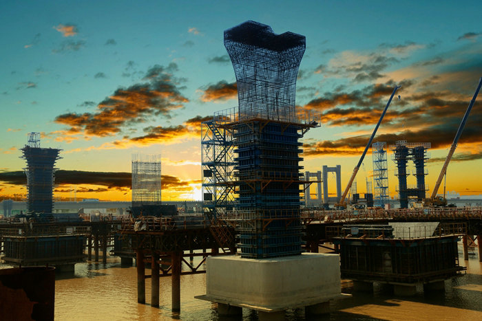 該項(xiàng)目部由于調(diào)動了各方面積極因素,全年施工生產(chǎn)取得好成績:濱?;ネㄈ骈_工,規(guī)模顯現(xiàn),濱海高架安全通過17條海底管線,跨海底直徑4.5米輸油管道連續(xù)梁于12月15日成功合攏,濱?;ネㄌ崆?天架設(shè)第一片鋼箱梁,搭設(shè)鋼棧橋5232米,完成樁基835根、承臺245座、墩身274座。完成施工產(chǎn)值與2020年7.0629億元產(chǎn)值相比,超額11.95%,