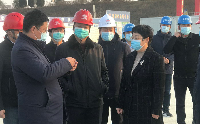 1月11日下午,寶雞市市委常委、常務(wù)副市長(zhǎng)劉榮賢(右前一)、市政府副秘書(shū)長(zhǎng)李曉毅、市發(fā)改委、市自然資源和規(guī)劃局、市林業(yè)局主要負(fù)責(zé)同志一行,在中鐵二十一局承建的眉太高速公路1標(biāo)渭河特大橋工地進(jìn)行調(diào)研。 (胡志超 攝)