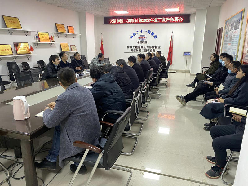 劉忠厚一行首先到施工現(xiàn)場(chǎng),就復(fù)工復(fù)產(chǎn)推進(jìn)情況進(jìn)行了詳細(xì)了解。隨后,在項(xiàng)目部會(huì)議室召開了復(fù)工復(fù)產(chǎn)部署會(huì)議,項(xiàng)目經(jīng)理就天福和園二期的形象進(jìn)度、人員進(jìn)場(chǎng)情況和接下來的工期計(jì)劃進(jìn)行了詳細(xì)匯報(bào)。