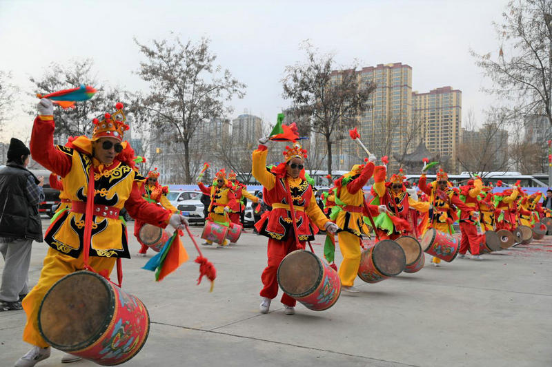 2月14日下午,中鐵二十一局四公司臨夏區(qū)域指揮部迎來了百余名特別的訪客,他們身著鮮艷的服裝,精神抖擻、神采飛揚,伴隨著鏗鏘的鑼鼓節(jié)奏,扭秧歌、舞彩扇,手起槌落間太平鼓響徹云霄,在臨夏州委、州政府,臨夏市委、市政府的支持下,臨夏縣異地搬遷秧歌隊將一場別開生面、年味十足的社火表演送進了這個與河州大地和諧共生,向新而行的四方院內(nèi)。