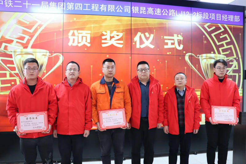 最后,項目部全體職工對項目領(lǐng)導(dǎo)班子成員以及副部長以上人員進行了民主評議;項目副經(jīng)理宣讀了項目部2021年度“先進集體、技術(shù)能手、先進工作者、優(yōu)秀勞務(wù)隊”表彰獎勵名單,并為獲獎?wù)哌M行了頒獎。