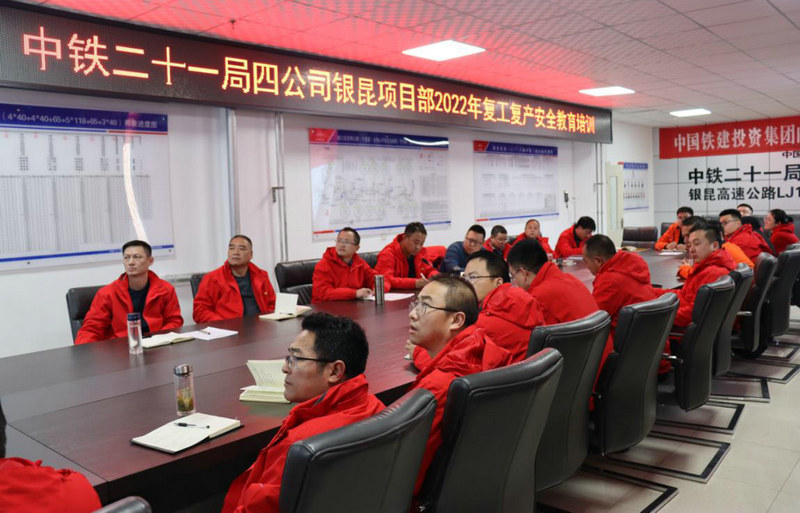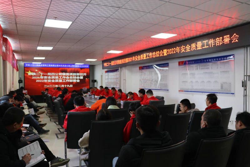2月19日下午,中鐵二十一局四公司銀昆高速公路項目經理部組織全員召開2021年安全質量工作總結會暨2022年安全質量工作部署會、復工復產安全教育培訓會。