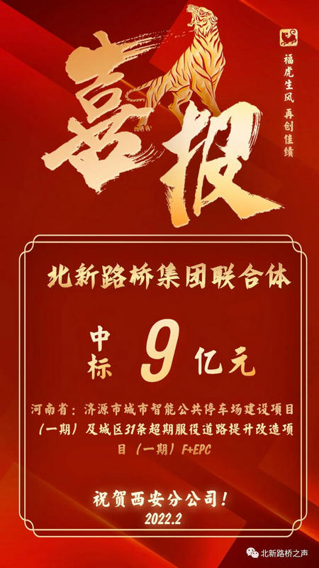 近日,北新路橋集團(tuán)收到濟(jì)源市城投建設(shè)發(fā)展有限公司發(fā)來中標(biāo)通知書,成功中標(biāo)河南省濟(jì)源市城市智能公共停車場建設(shè)項(xiàng)目(一期)及城區(qū)31條超期服役道路提升改造項(xiàng)目(一期),中標(biāo)金額為9億元,施工工期360日歷天。