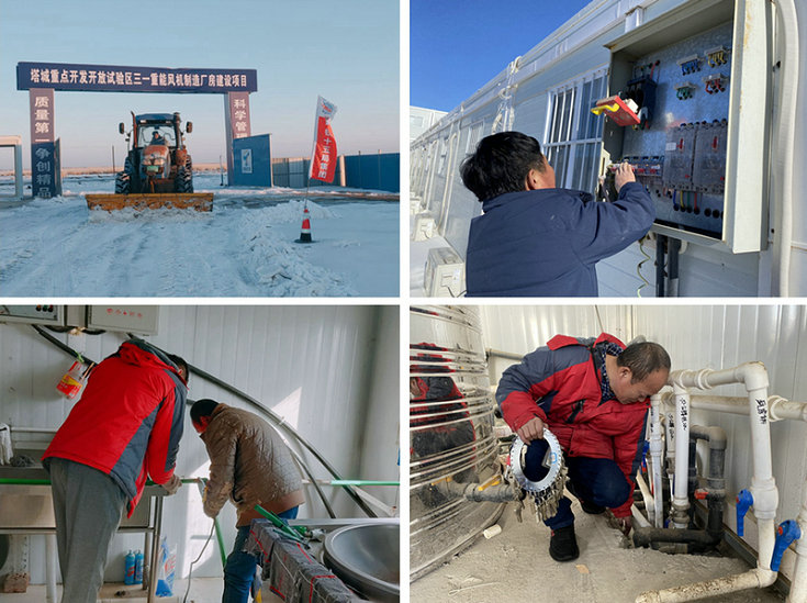 受塔城地區(qū)冬季極端低溫天氣與持續(xù)暴雪氣候影響,該項(xiàng)目園區(qū)內(nèi)部在冬季期間出現(xiàn)大面積水管凍裂、電線短路、取暖故障等問題,后勤保障工作面臨著嚴(yán)峻的挑戰(zhàn),復(fù)工在即,時(shí)間緊迫。