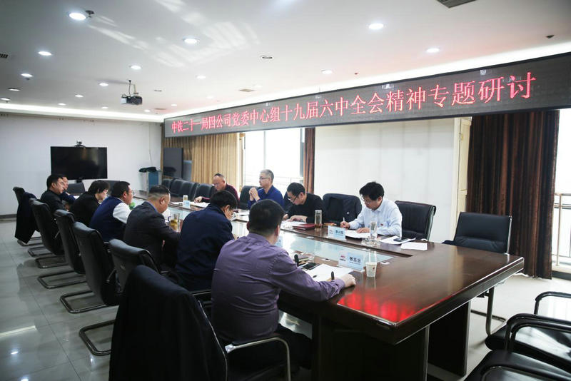 3月1日,中鐵二十一局四公司黨委理論學(xué)習(xí)中心組在進(jìn)行自學(xué)研習(xí)、集中學(xué)習(xí)的基礎(chǔ)上,開(kāi)展學(xué)習(xí)貫徹黨的十九屆六中全會(huì)精神專題研討,公司黨委書(shū)記、董事長(zhǎng)朱昌岳主持會(huì)議,中心組全體成員參加了本次專題研討。