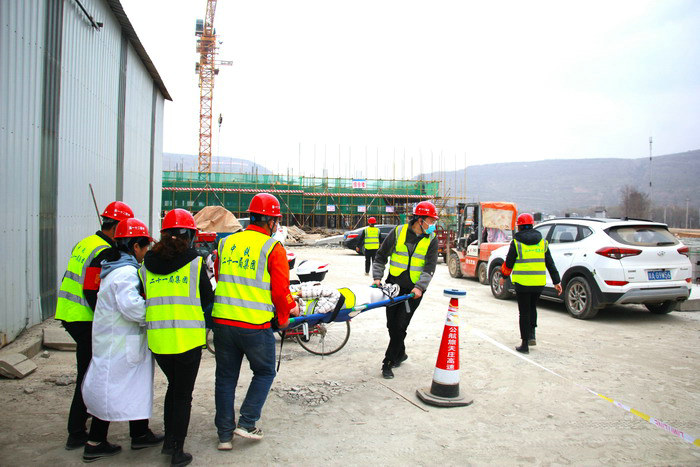 演練救援傷員 項目通過此次應急演練活動的開展,有效的提高了全員的安全生產(chǎn)和自我保護意識,同時項目應急救援領導小組的統(tǒng)一指揮、綜合調(diào)度、協(xié)調(diào)配合能力得到了很好的檢驗,施工作業(yè)人員的險情預防意識和應對突發(fā)情況的應變能力得到了很大的提高。項目將以此次演練活動為契機,加強春季消防應急隊伍建設,做好消防物資儲備,確保安全生產(chǎn)和年度目標的順利實現(xiàn)。