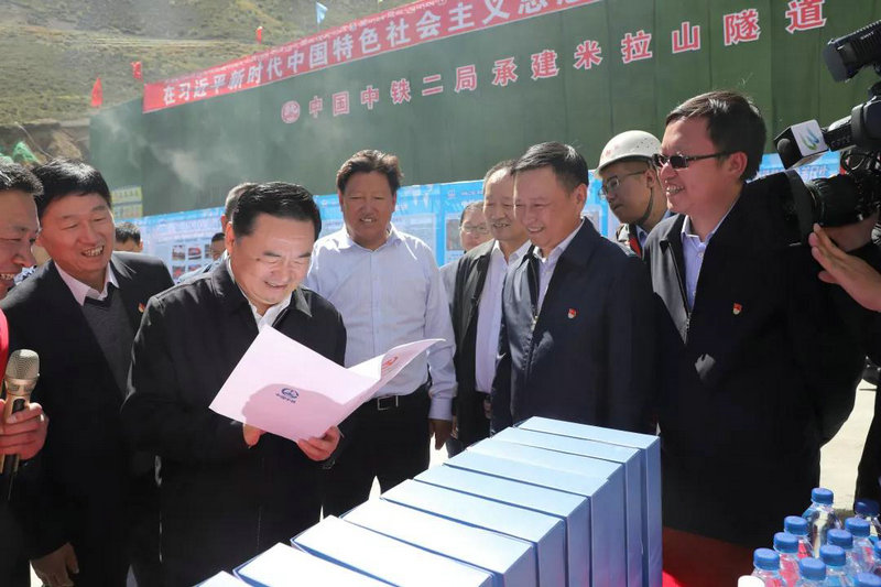 本網(wǎng)西藏訊(通訊員趙雨 劉梟)9月5日,國(guó)務(wù)院國(guó)資委黨委書(shū)記郝鵬一行蒞臨中鐵二局五公司西藏國(guó)道318線米拉山隧道項(xiàng)目,考察指導(dǎo)項(xiàng)目管理及黨建、扶貧工作。西藏自治區(qū)黨委副書(shū)記莊嚴(yán),中國(guó)中鐵總裁張宗言、副總裁段永傳,干部部部長(zhǎng)賈惠平陪同檢查。