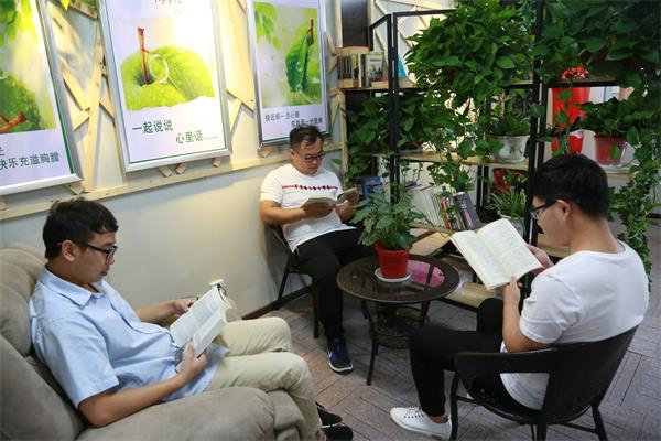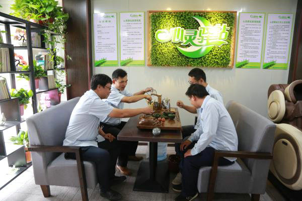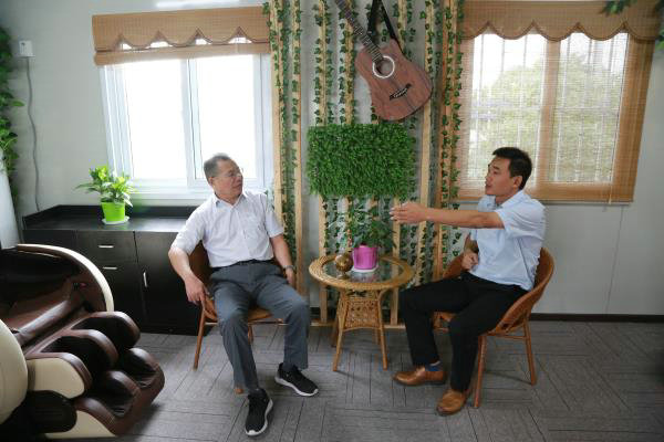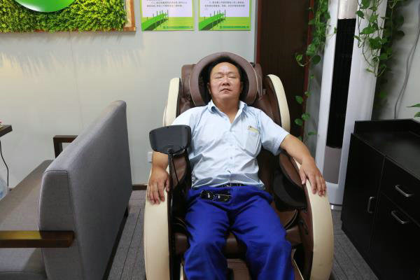 兩間活動(dòng)集裝箱就是“心靈驛站”的家,不算太大的房間布置得溫馨有序,此時(shí)機(jī)械管理員張毅已經(jīng)舒舒服服坐上了按摩椅,葉蘇招呼“小伙伴”喝上了功夫茶,健身自行車被兩位年輕的帥哥“霸占”,女工委員常美蘭與“小伙伴”相談甚歡,每個(gè)人的臉上“寫滿了笑容”。“受條件限制,我們只能布置這么大的房間,但功能不能少,條件不能降,我們這是“小格局,大情懷”,項(xiàng)目經(jīng)理牟翔爽朗地笑著說道。