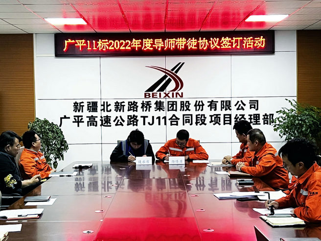為幫助新員工盡快適應崗位,形成并鞏固“有人帶、有人教、有人幫”的人才培養(yǎng)機制,為企業(yè)發(fā)展持續(xù)向好提供優(yōu)質(zhì)的人才儲備,3月20日晚,廣平高速公路TJ11合同段“2022年度導師帶徒協(xié)議簽訂儀式”在項目會議室舉行。