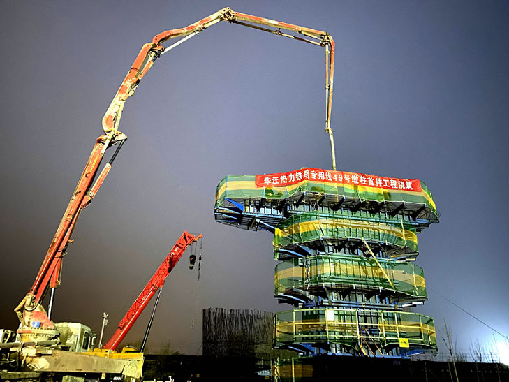 3月22日晚上8點,由中原公司承建的華汪熱力專用線工程跨日東高速公路特大橋49號墩柱澆筑混凝土順利完成,這是該工程全線第一根完成混凝土澆筑的墩柱,標(biāo)志著全線橋梁下部施工正式拉開帷幕。