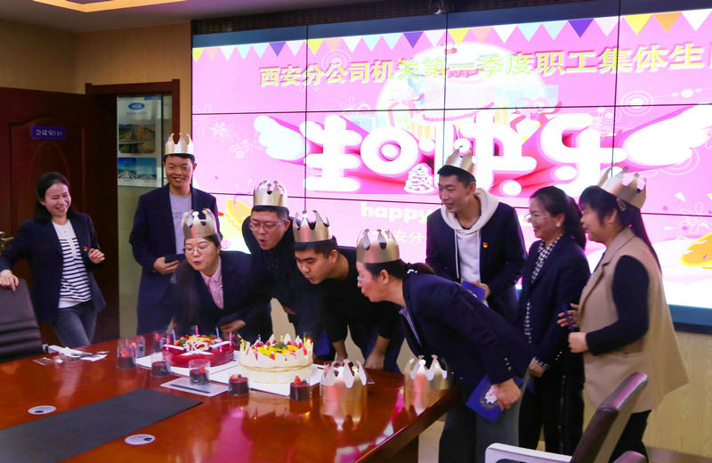 “祝你生日快樂,祝你生日快樂..........”伴隨著《生日歌》那熟悉的旋律,現(xiàn)場融洽和諧的氣氛,讓大伙兒都洋溢著開心幸福的笑容,享受著這輕松、愉快的時(shí)光。該分公司領(lǐng)導(dǎo)班子將寫滿祝福的精美賀卡送到每位“壽星”手中,并與大家一起唱生日歌、吹蠟燭、許愿、切蛋糕,在現(xiàn)場活躍的氣氛中合影留念。過生日的職工們紛紛感嘆:“哇!這個(gè)集體生日會(huì)好有儀式感,好有家的感覺,好溫馨!”