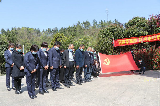 時(shí)屆清明祭先烈,翠柏凝春慰英魂。在溫順的春風(fēng)里,訴不盡對(duì)革命先烈的無(wú)限深情、道不盡對(duì)烈士英魂的無(wú)盡哀思。烈士陵園松柏蒼翠,草木蔥蘢,巍峨聳立的革命烈士紀(jì)念碑顯得格外莊嚴(yán)肅穆。上午11時(shí)許,祭掃活動(dòng)正式開(kāi)始。首先全體人員向紀(jì)念碑獻(xiàn)上花籃,面向紀(jì)念碑集體唱響國(guó)歌并默哀一分鐘。在支部書(shū)記的帶領(lǐng)全體人員集體瞻仰了革命烈士紀(jì)念碑,向烈士獻(xiàn)上獻(xiàn)花,表達(dá)深切的哀思和崇高的敬意,讓全體人員接受了一次深刻的黨性教育。