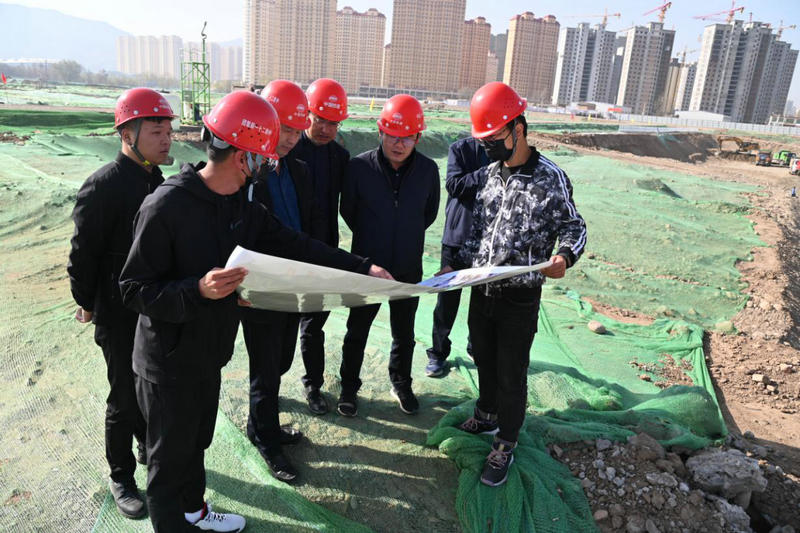 柳倉太、祁濤一行分別前往由臨夏工程公司承擔施工的迎曦公館、東郊公園—體育公園、城投睦府、黃河國家文化公園—牡丹公園、新華街地下停車場、道合未名府、伊和名苑、迎賓大道等項目檢查指導。