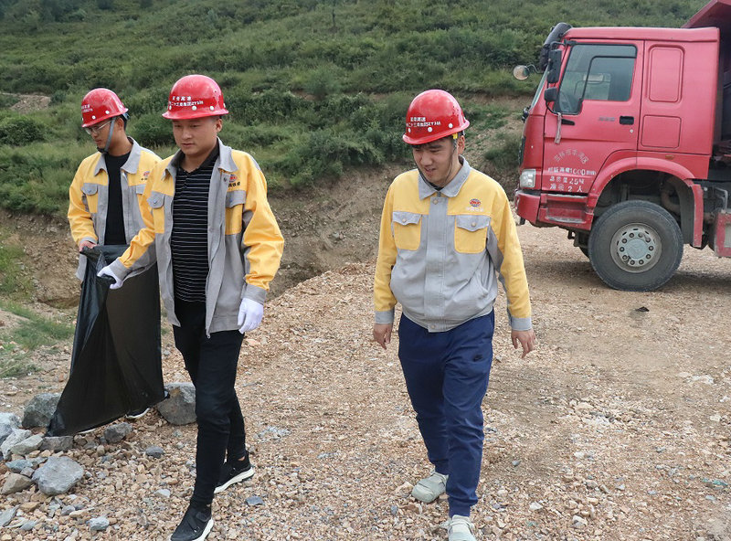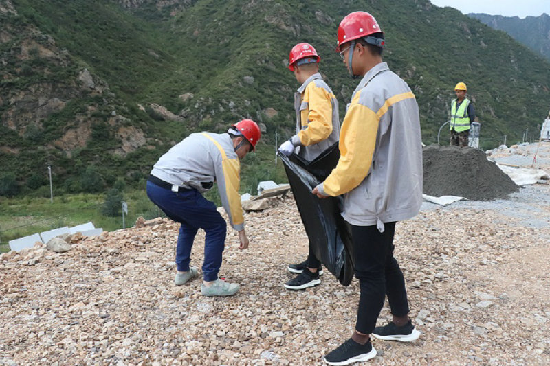 溫暖和煦的陽(yáng)光灑在延崇ZT3標(biāo)段的大地上,遠(yuǎn)處一群頭戴安全帽的項(xiàng)目人員,正低頭認(rèn)真清理著施工現(xiàn)場(chǎng)建筑、生活垃圾。