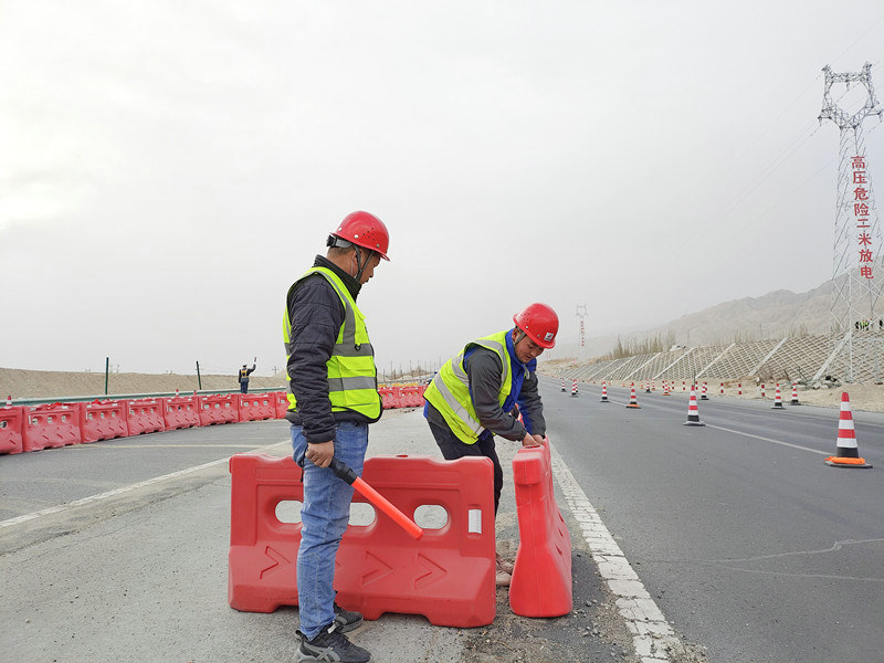 “本次導改將吐和高速主線車輛引入保通線,車流量大,施工難度高,為確保行車安全,項目部對全線設置行車標志牌,臨近交通導改點前同樣設置標志警告,定期對行車道的反光膜、爆閃燈、導向標等進行檢查,配備多名交通協管員24小時不間斷對高速路進行巡查。首段交通導改順利完成,為項目后期規(guī)劃及導改工作提供了寶貴經驗!”項目負責人蔣仁軍說道。