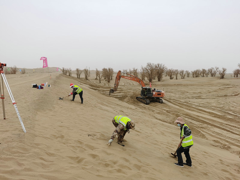 (38團-塔中沙漠公路項目工人清理路基側面)