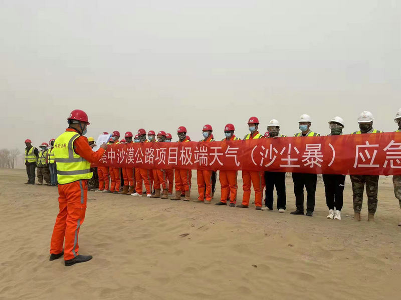 演練開始,由演練總指揮組織啟動應急預案,介紹了本次演練的項目和注意事項。所有的人員、機械,對沙塵暴預警、作業(yè)人員撤離、失聯(lián)人員搜救等科目進行演練,規(guī)范了躲避沙塵暴的措施和方法,進一步提升了項目部各崗位人員在面對沙塵暴時的處置能力,也鍛煉和提高了項目員工在災害條件下應急救援的實戰(zhàn)經驗。