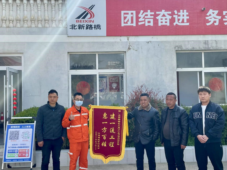 一面沉甸甸的錦旗,既是肯定和信任,更是鞭策和鼓勵(lì)。下一步,長三角分公司宿州項(xiàng)目全體員工,將牢記職責(zé)使命、勇于攻堅(jiān)克難,持續(xù)為項(xiàng)目沿線群眾的生產(chǎn)生活做好服務(wù)保障,以一流的水準(zhǔn)、一流的業(yè)績,書寫北新路橋的擔(dān)當(dāng)和作為,不負(fù)群眾的真情和期待。