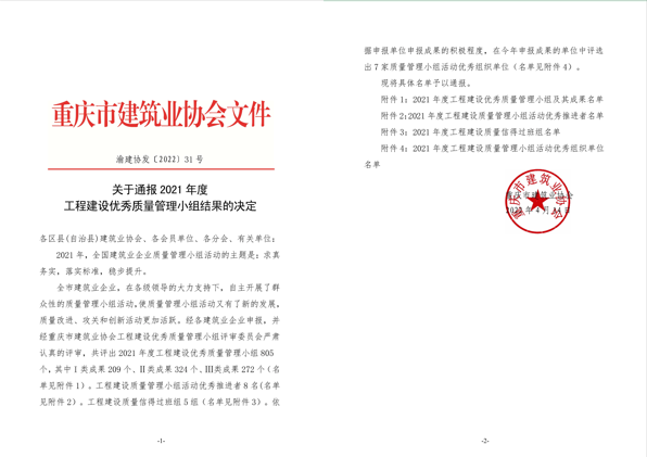 4月14日,在重慶市建筑業(yè)協(xié)會舉辦的2021年度工程建設(shè)質(zhì)量管理小組優(yōu)秀成果展示經(jīng)驗(yàn)交流會上,北新路橋集團(tuán)西安分公司申報(bào)的7項(xiàng)QC成果,在參加此次交流發(fā)布的近900件成果中,分獲一類成果1項(xiàng),二類、三類成果各3項(xiàng)。其中由蘭州新區(qū)項(xiàng)目鋼筋焊接工程QC小組申報(bào)的《提高結(jié)構(gòu)受力鋼筋焊接質(zhì)量》獲評一類成果,并代表北新路橋集團(tuán)作現(xiàn)場經(jīng)驗(yàn)交流。