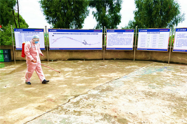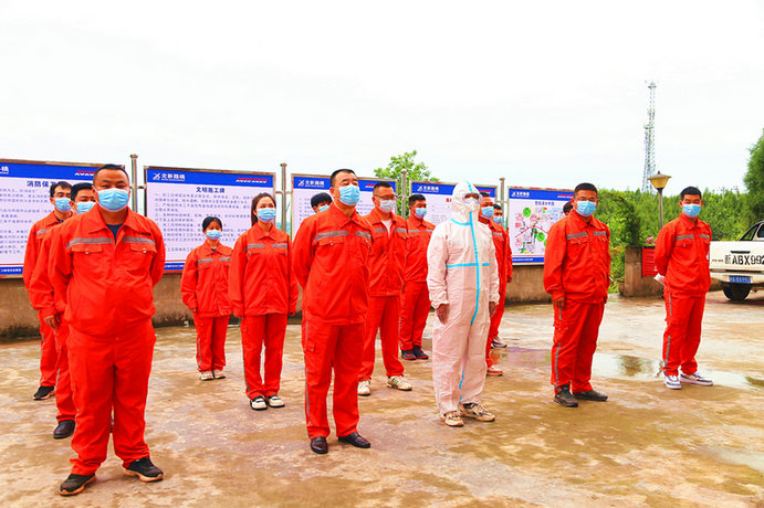 近日,在該項(xiàng)目駐地,由15名職工組成的疫情上報(bào)組、通訊聯(lián)絡(luò)組、現(xiàn)場(chǎng)急救組、防疫安保組、消殺工作組、物資保障組六個(gè)應(yīng)急小組列成方陣。