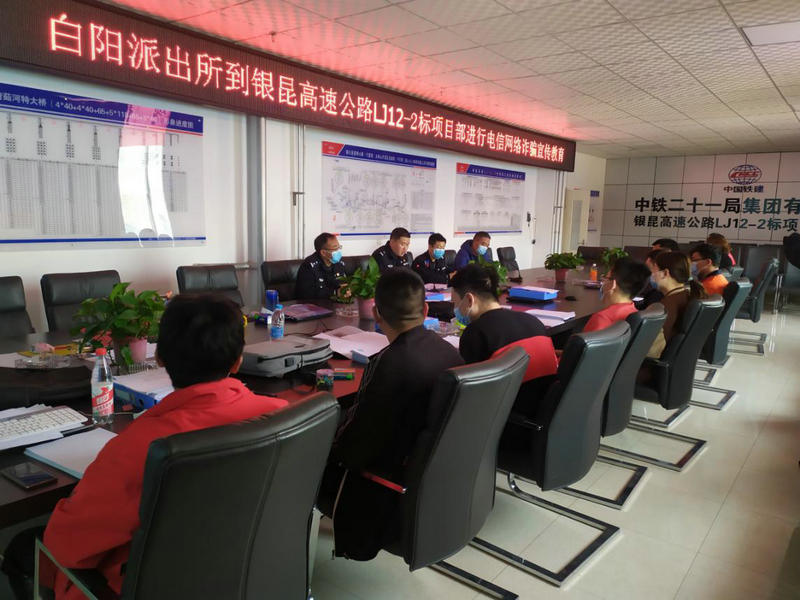 4月21日,中鐵二十一局銀昆高速公路LJ12-2標(biāo)項(xiàng)目邀請(qǐng)彭陽(yáng)縣白陽(yáng)鎮(zhèn)派出所警官到項(xiàng)目部開展防范電信網(wǎng)絡(luò)詐騙宣傳專題教育活動(dòng),項(xiàng)目部全體職工參加。