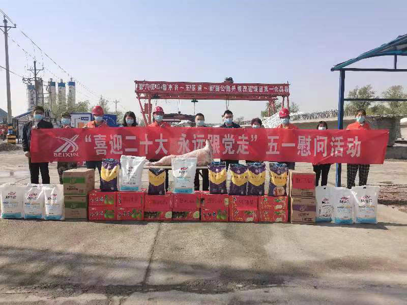 烏五新項(xiàng)目屬北新集團(tuán)重點(diǎn)市政工程,施工建設(shè)標(biāo)準(zhǔn)要求高、施工難度大,為兌現(xiàn)6月小型預(yù)制構(gòu)件標(biāo)準(zhǔn)化項(xiàng)目建設(shè)目標(biāo),項(xiàng)目部大干快上全力推進(jìn)標(biāo)小型預(yù)制構(gòu)件場標(biāo)準(zhǔn)化建設(shè)。在“五一”節(jié)即將到來之際,兵團(tuán)交建公司總會計(jì)師周偉一行為項(xiàng)目全體員工送上精心準(zhǔn)備的羊、水果、米、面等慰問品,并代表公司向全體項(xiàng)目員工表示了衷心感謝,叮囑全體員工做好個(gè)人防護(hù),加強(qiáng)疫情防控安全意識,力爭在5月中旬超前完成小型預(yù)制場標(biāo)準(zhǔn)化建設(shè)目標(biāo)。
