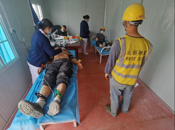 該項(xiàng)目聯(lián)系并邀請當(dāng)?shù)靥m州新區(qū)輔仁醫(yī)院醫(yī)護(hù)人員進(jìn)駐施工現(xiàn)場為農(nóng)民工進(jìn)行體檢,此次體檢除讓農(nóng)民工能及時(shí)掌握和了解自身健康狀況,同時(shí)也對架子工、塔吊司機(jī)等高空危險(xiǎn)作業(yè)人員的身體適宜性進(jìn)行全面評估,尤其是對可能患有心臟病、高血壓等疾病人員進(jìn)行篩查,對不適合當(dāng)前崗位的人員進(jìn)行調(diào)整,以保障農(nóng)民工人身安全,防范和杜絕事故發(fā)生。