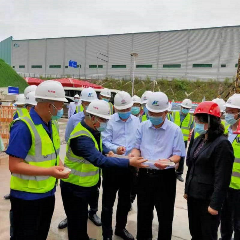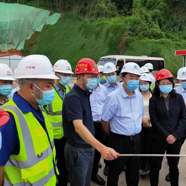 在中梁山隧道施工現(xiàn)場,李方宇對標(biāo)準(zhǔn)化作業(yè)、安全管理、文明施工、綠色環(huán)保、疫情防控等方面給予充分肯定和評價,他說:“走進(jìn)工地現(xiàn)場,安全標(biāo)識標(biāo)牌、標(biāo)語口號醒目,安全管理氛圍好;施工通道建設(shè)規(guī)范大氣,文明施工、標(biāo)準(zhǔn)化措施到位;積極克服了各種困難,進(jìn)度管理、現(xiàn)場管理成效明顯”。在查看了水壓爆破、泥漿壓濾機(jī)等設(shè)備后,他指出,重慶市鐵路集團(tuán)與中鐵建重慶投資集團(tuán)、重慶軌道交通15號線二期總承包部及16標(biāo)項目部共同協(xié)作、配合到位,各項施工措施得到細(xì)化強(qiáng)化。他強(qiáng)調(diào),下一步要加大科技興管、科技興建的力度,進(jìn)一步統(tǒng)籌抓好抓嚴(yán)疫情防控、安全質(zhì)量、施工規(guī)范、綠色環(huán)保等工作,全力把重慶軌道交通15號線打造成示范線。