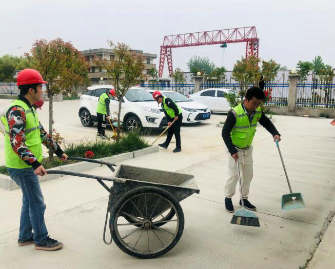 伴隨著機(jī)械的轟鳴聲,施工現(xiàn)場展現(xiàn)出一派熱火朝天的景象,熱情高漲的勞動者們彎腰鋤草、清理廠內(nèi)垃圾、整理廢舊物資。處處可見忙碌勞動的身影。經(jīng)過了2個多小時的辛勤勞作后,項目部駐地已窗明幾凈,施工現(xiàn)場道路干凈整潔,物資材料擺放有序,預(yù)制廠區(qū)面貌煥然一新。
