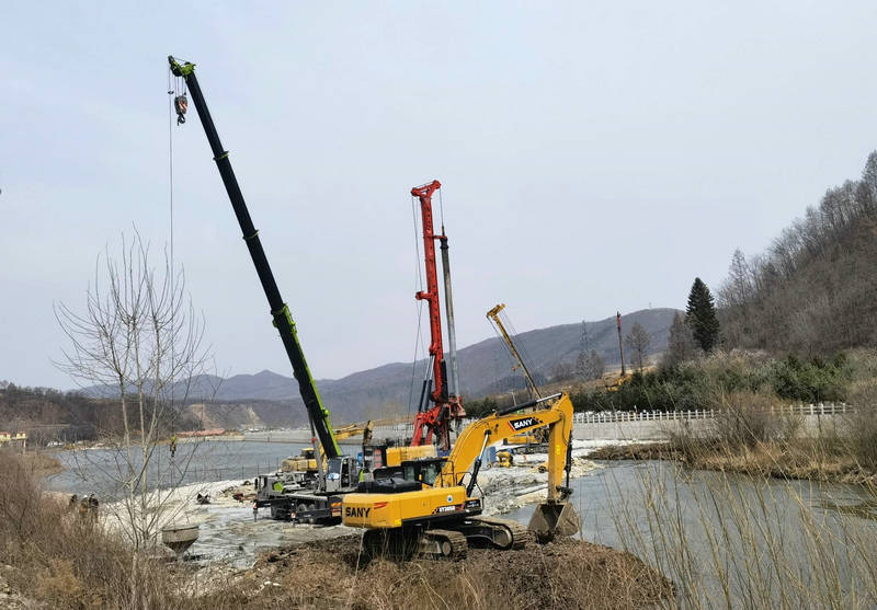 該橋先后跨越渾白鐵路、縣道X096及雙河三級電站庫區(qū)。其中1#橋墩坐落于山坡上,下方為X096縣道。2#-3#橋墩之間跨越既有渾白鐵路,3#-7#橋墩處于雙河三級電站庫區(qū)的涉水區(qū),需要利用6000立方米石料在水中先行筑島,改移河道后方可開工建設(shè)。面對工期緊迫、地質(zhì)條件差、周邊環(huán)境復(fù)雜、跨越既有線施工安全風(fēng)險(xiǎn)高等不利因素,中鐵二十三局集團(tuán)沈白高鐵項(xiàng)目部把保證工程安全和質(zhì)量做為重中之重,加大人財(cái)物等資源的投入力度,不斷優(yōu)化施工組織設(shè)計(jì)。將采取集中優(yōu)勢兵力打殲滅戰(zhàn)的辦法,晝夜不停、連續(xù)作戰(zhàn),全力以赴搶進(jìn)度,確保在三個月內(nèi)完成3#-7#涉水橋墩施工,突破制約工程進(jìn)度的瓶頸。為鉆孔樁、承臺、墩身,以及后續(xù)的軌道鋪設(shè)施工創(chuàng)造條件。同時,他們將嚴(yán)把跨越及鄰近既有線作業(yè)安全關(guān),嚴(yán)格執(zhí)行作業(yè)標(biāo)準(zhǔn)和有關(guān)卡死卡嚴(yán)制度,確保渾白鐵路大動脈運(yùn)輸?shù)慕^對安全。