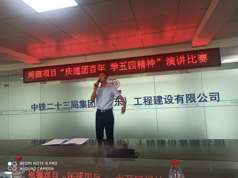 為傳承和弘揚五四精神,充分展示河源工程項目部青年干部朝氣蓬勃、奮發(fā)向上的精神風貌,5月4日,在五四青年節(jié)之際,特舉辦“慶建團百年 學五四精神”主題演講比賽。項目部35歲以下青年干部員工共同領略了青春擔當與風采。項目部黨支部副書記、項目副經(jīng)理、辦公室主任、團支部書記等5人擔任評委。