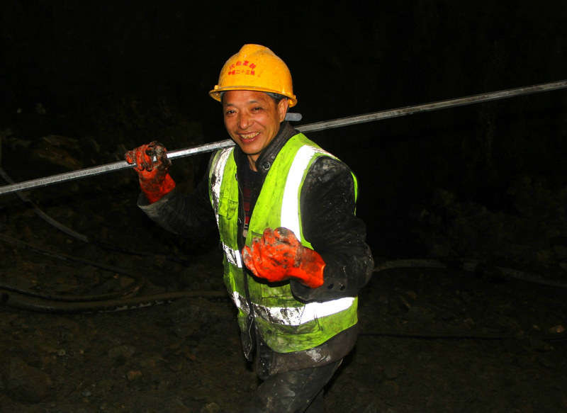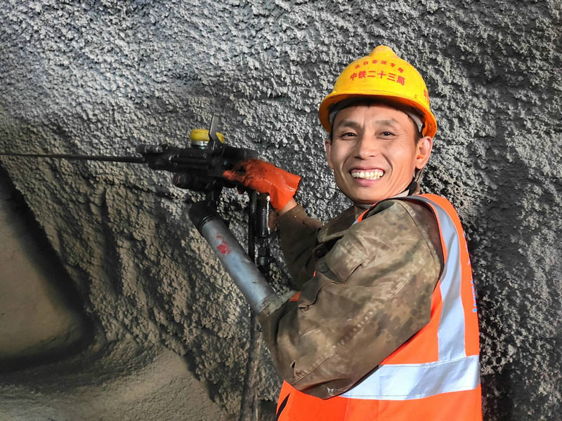 “放炮嘍....”隨著楊定芝的呼喊,黑影崗隧道進口內發(fā)出轟然巨響,原本堅硬的巖石,卻按照預先的設定化為一堆碎石。楊定芝是開挖班中的一員,也是隧道進尺的主攻手。日復一日,在嘈雜震動、陰暗潮濕的環(huán)境里,他手握幾十公斤重的鑿巖機,4米長的鉆桿直抵巖石,一站就是五、六個小時。一班下來,走出昏暗的隧道時,陽光刺眼難耐,手掌腫脹、腰酸腿痛,嗡嗡作響猶在耳邊。
