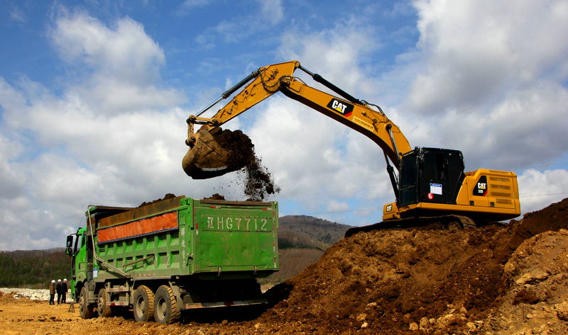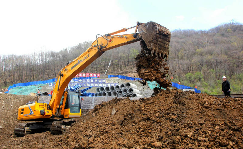 節(jié)日期間,管內大營村段路基施工拉開序幕。該段路基全長1237米靠近村屯、鄰近山區(qū)、穿行基本農田,且地勢起伏匯水點多、基底松軟加固CFG樁C組土換填、土質復雜邊坡防護采用拱形骨架、混凝土肋柱。為了加快表土剝離速度,增設了兩臺推土機進行分段平行作業(yè)。另一側的大型挖掘機高擎巨臂抓斗不停翻轉挖填作業(yè),10余臺自卸車往來穿梭搶運土方,一段段路基雛形初現。他們全力以赴爭分奪秒與時間賽跑,快速完成表土外運,為路基試驗段開辟施工場地。